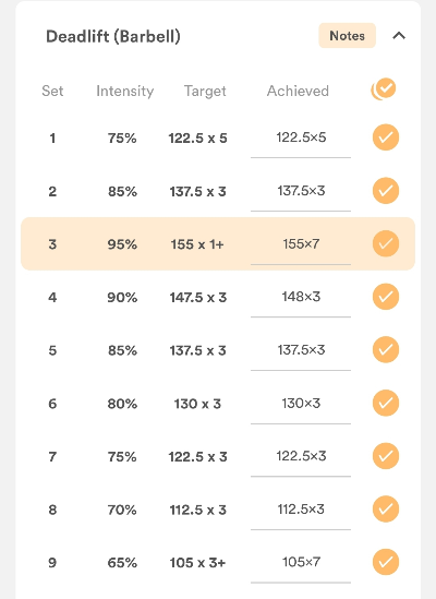 최고 무게 1+ 수행을 5회 4회씩 할 수 있을지는 의문이다. 170kg 까지는 가능할지도 모르겠다.